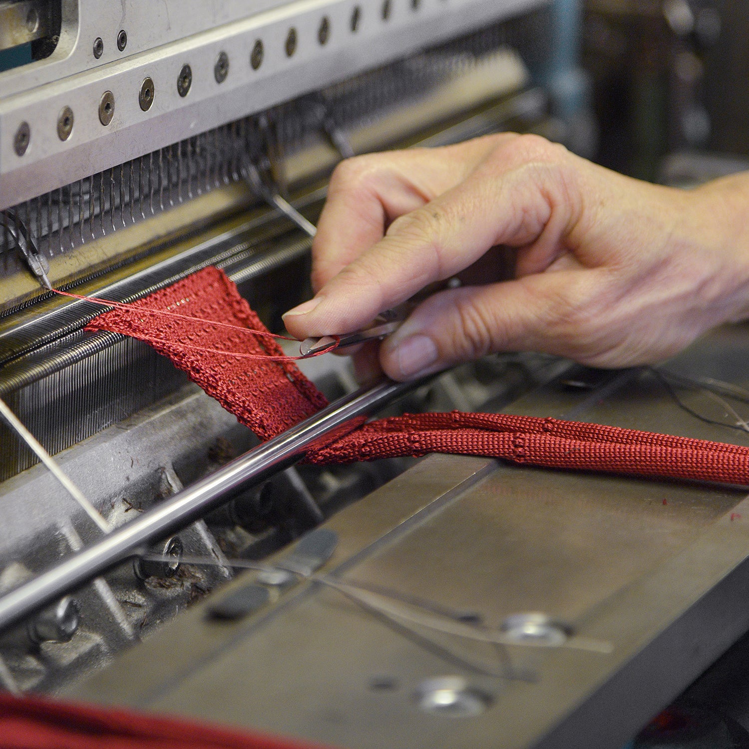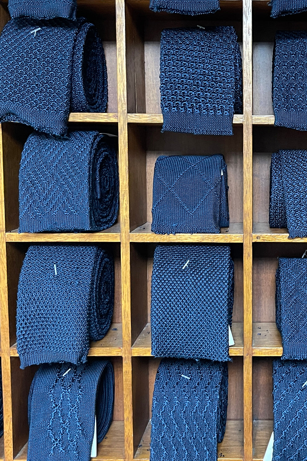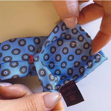 Questa particolare lavorazione delle cravatte, oggi molto apprezzata, può essere realizzata solo con particolari telai a maglia tubolare