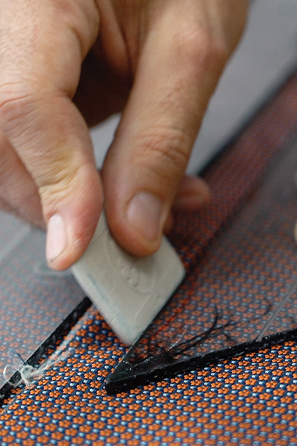Occorrono 22 passaggi per realizzare una cravatta sartoriale, dalla preparazione del taglio alla cucitura a mano dell’etichetta.